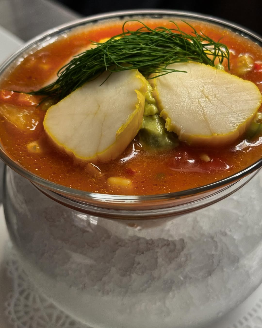 When the sun’s out, the gazpacho comes out. Topped with avocado mousse and saffron-poached scallops—because we don’t do ordinary