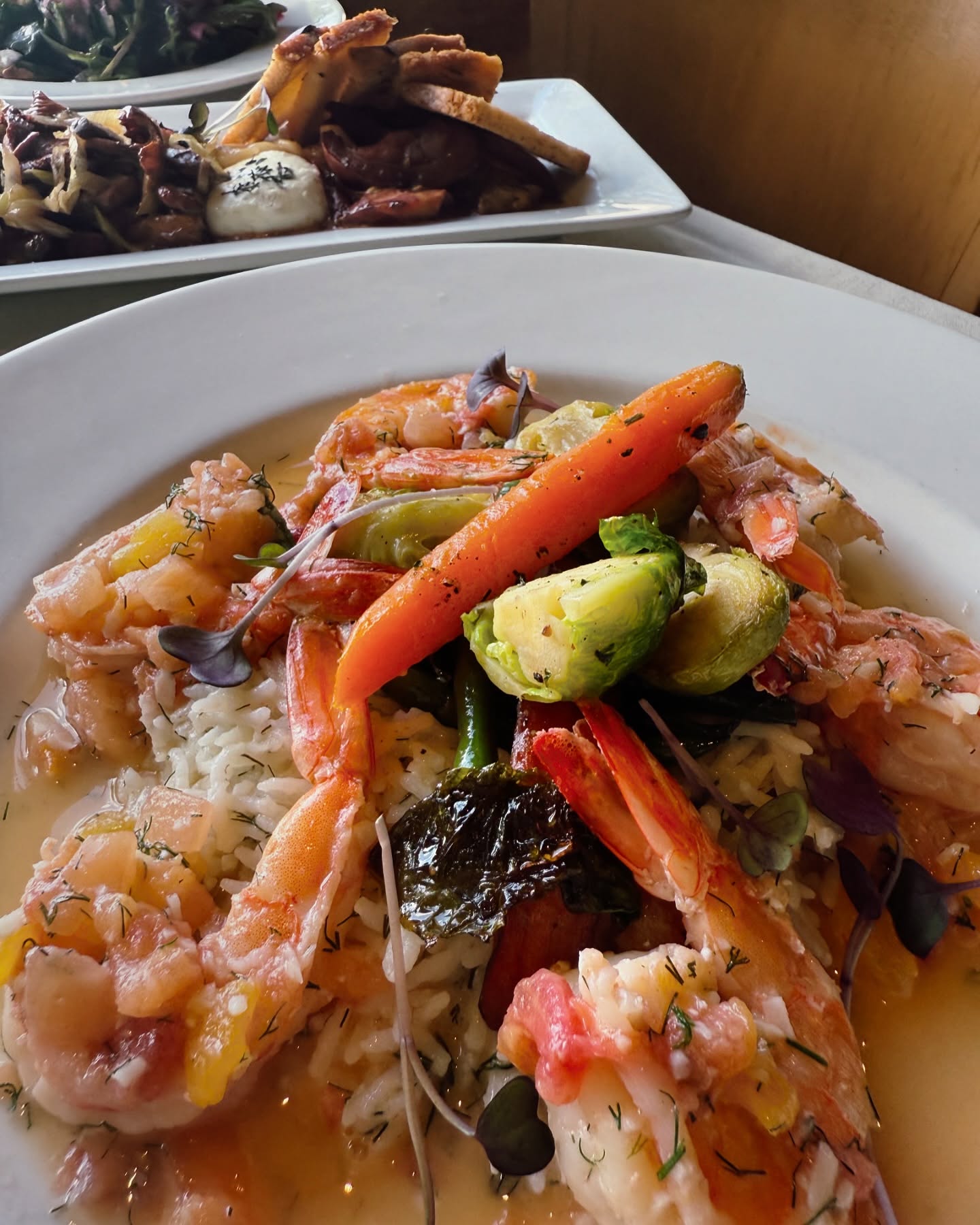 Prawns in an heirloom tomato, lemon butter with dill — rich, bright, and beautifully balanced. The perfect pairing to a sunset on Chuckanut Drive.